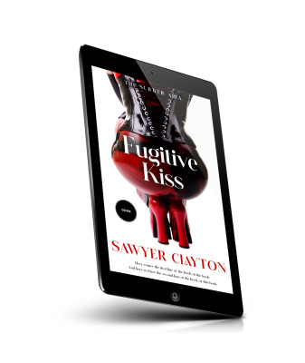 “A person in red and black leather attire is shown from the back, with the book title "Fugitive Kiss" prominently displayed.”