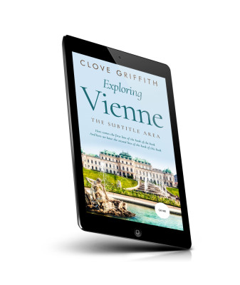 “A book cover featuring an ornate building with domes and fountains in the foreground, titled "Exploring Vienne."”