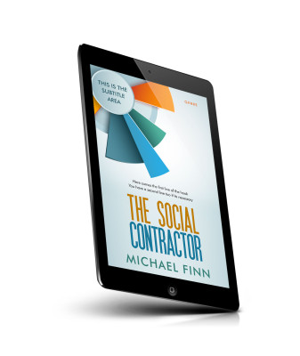 “A book cover with abstract patterns, titled "The Social Contractor" by Michael Finn.”