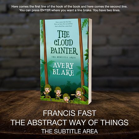 Other keywords revelant to this premade cover are environment, artwork, painting, cover, trees, characters, playful, vibrant, kids, tropical, greenery, jungle, soldiers.