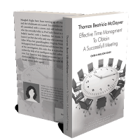 “A round conference table with office chairs surrounds a large clock face, symbolizing time management for successful meetings.”