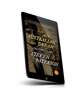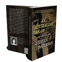 “Vintage-style book cover with a sketch of a man and boat, titled "An Australian Dream" by Steven Paterson.”