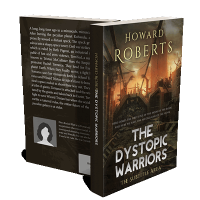 “A post-apocalyptic scene with dilapidated structures and a dark, moody sky. The book's title and author are prominently displayed.”