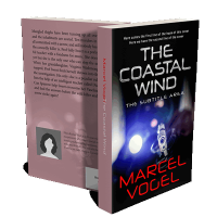 “A dark, mysterious book cover with a futuristic theme, featuring a camera lens and bokeh lights in the background.”