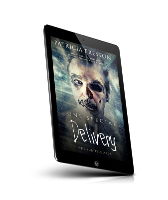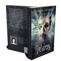 “A haunting, surreal face with stitched mouth on a dark, eerie background. Title "One Special Delivery" is at the bottom.”