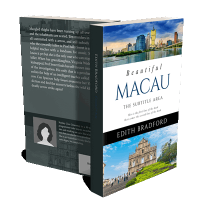 “A book cover showcasing Macau’s skyline above and the Ruins of St. Paul's below, titled "Beautiful Macau" by Edith Bradford.”