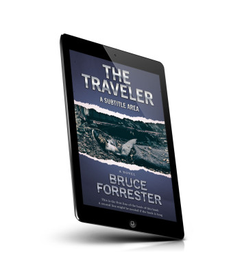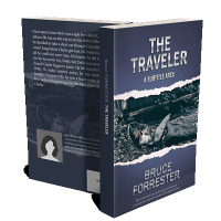 “A pair of shoes is seen under a torn paper edge, against a dark, moody outdoor background with "The Traveler" as the title header.”