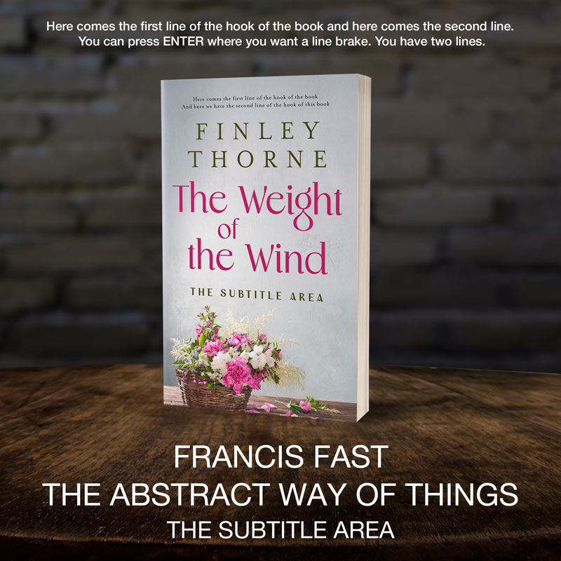 This book cover has 3 lines for the title, 1 line for the subtitle, 2 lines for the author, 2 lines for the hook.