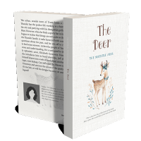 “A book cover with an illustrated deer surrounded by branches and leaves. The background is textured and light-colored.”