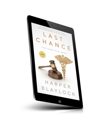 “A book cover with a gavel, caduceus, and the author named Harper Blaylock.”