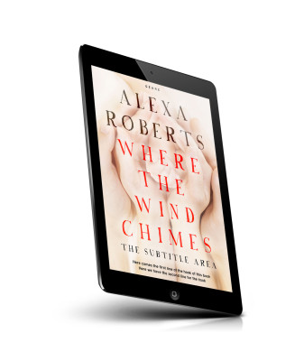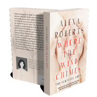 “A close-up of adult hands gently holding a baby's feet, with text overlay for a book cover titled "Where The Wind Chimes" by Alexa Roberts.”