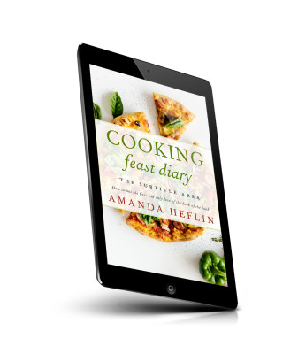 “A cookbook cover with a slice of pizza, basil, and green pepper.”