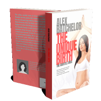 “Pregnant woman in a bra sitting cross-legged on a bed, hands in prayer position above her head, eyes closed. Book cover text overlay.”