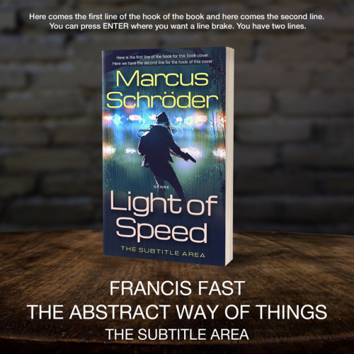 This book cover has 2 lines for the title, 1 line for the subtitle, 2 lines for the author, 2 lines for the hook, and finally 1 line for the genre.