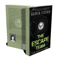 “A dark, intense cover featuring a central emblem of an eagle in front of a fan, with bold green text for "The Escape Team."”