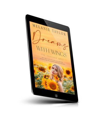 “A woman in a field of sunflowers at sunset. The book cover features an orange-yellow color scheme.”