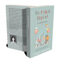 “An elephant and a beaver enjoy a tea party with balloons and cakes on a pastel-colored book cover.”