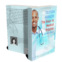 “A man with a stethoscope smiles on a book cover titled "The Keys to Medical Practice." The background includes a heartbeat line.”