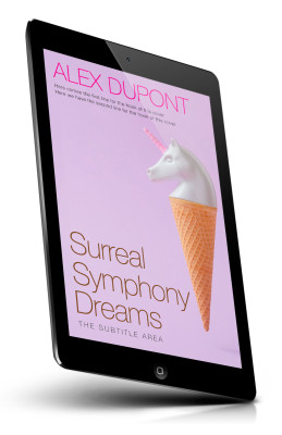 “A surreal cover featuring a unicorn head on an ice cream cone against a pastel purple background.”