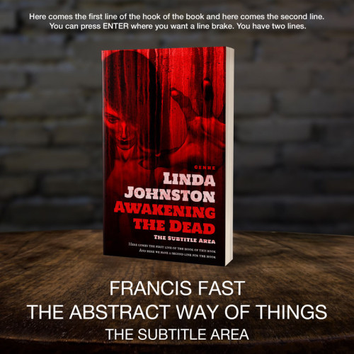 This book cover has 2 lines for the title, 1 line for the subtitle, 2 lines for the author, 2 lines for the hook, and finally 1 line for the genre.