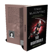 “A warrior with white hair and armor wields a large sword on the cover of a book titled "The Nightingale."”