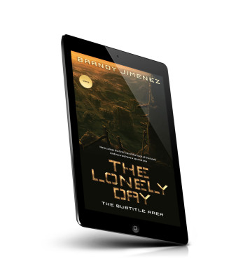 “Futuristic cityscape with a dark, moody atmosphere is depicted on a book cover.”