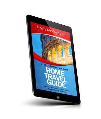 “A travel guide cover featuring an arched structure with a bright blue sky background.”