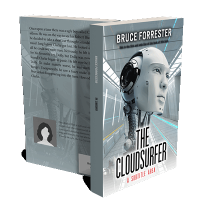 “A futuristic robot head with metallic features in a high-tech, illuminated corridor, shown on a book cover.”