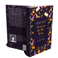 “Halloween-themed book cover with witch hats, pumpkins, broomsticks, cauldrons, and potions on a dark background.”