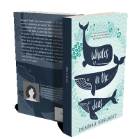 “Illustrated book cover with three whales against a wavy sea background, surrounded by aquatic plants and bubbles.”