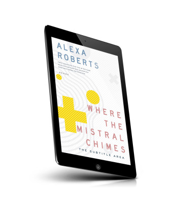 “A book cover with abstract yellow shapes and dots, featuring a bold title in pink text.”