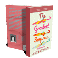 “Three colorful umbrellas with the text "The Greatest Surprise" in bright colors on a light green polka dot background.”