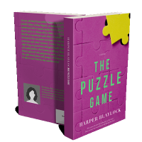 “A purple puzzle with pieces assembled and a yellow piece at the top right. The text is in green and white.”