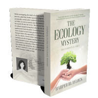 “A mature tree held by two pairs of hands against a light background, with the title "The Ecology Mystery" prominently displayed.”