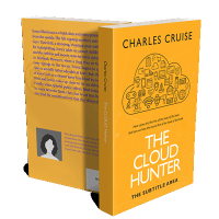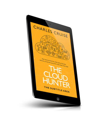 “Orange book cover with tech-themed cloud illustration above the title "The Cloud Hunter" and author's name at the top.”