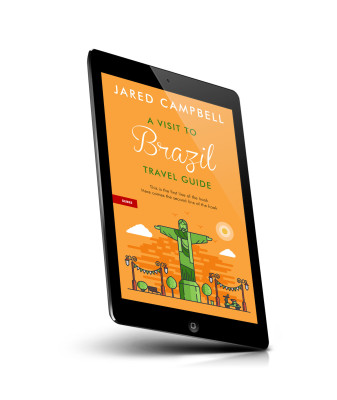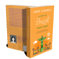 “An illustrated travel guide cover with the Christ the Redeemer statue, a sunny background, trees, and street lamps.”