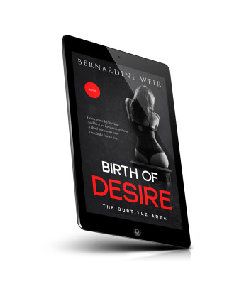 “A book cover featuring a woman in lingerie sitting on a stool against a dark background. Bold red and white text is below her.”