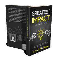 “A book cover with gears, a lightbulb, and the title "Greatest Impact" in bold yellow and white text on a dark background.”