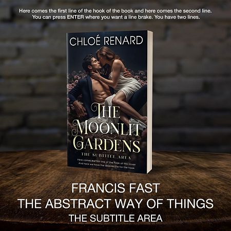 Other keywords revelant to this premade cover are elegant, sensual, twilight, suit, embrace, flowers, intimacy, moonlight, garden, gown, allure, nighttime, blooming, whisper, soft lighting.