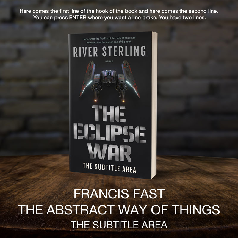 This book cover has 3 lines for the title, 1 line for the subtitle, 1 line for the author, 2 lines for the hook, and finally 1 line for the genre.