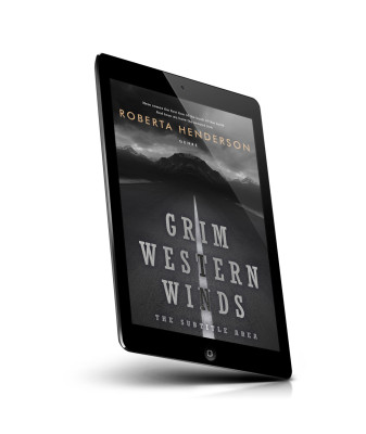 “Dark road leading to mountains under a cloudy sky; book cover with bold title and author's name.”