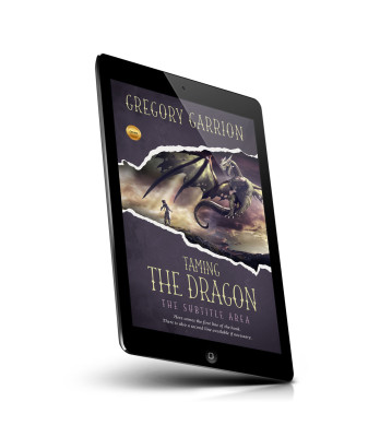 “A fantasy book cover featuring a dragon and a person standing on a rocky outcrop against a dramatic sky.”