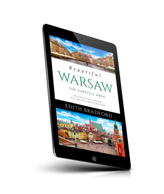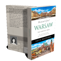 “A book cover featuring colorful cityscape photos of Warsaw, with historic buildings and a cloudy sky above.”