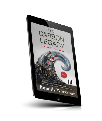 “A book cover featuring factory chimneys emitting smoke and heaps of industrial waste. The title in bold and red accents draw attention.”