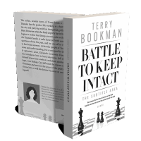 “A book cover featuring the title "Battle to Keep Intact" with a chessboard and pieces at the bottom. Monochrome color scheme.”