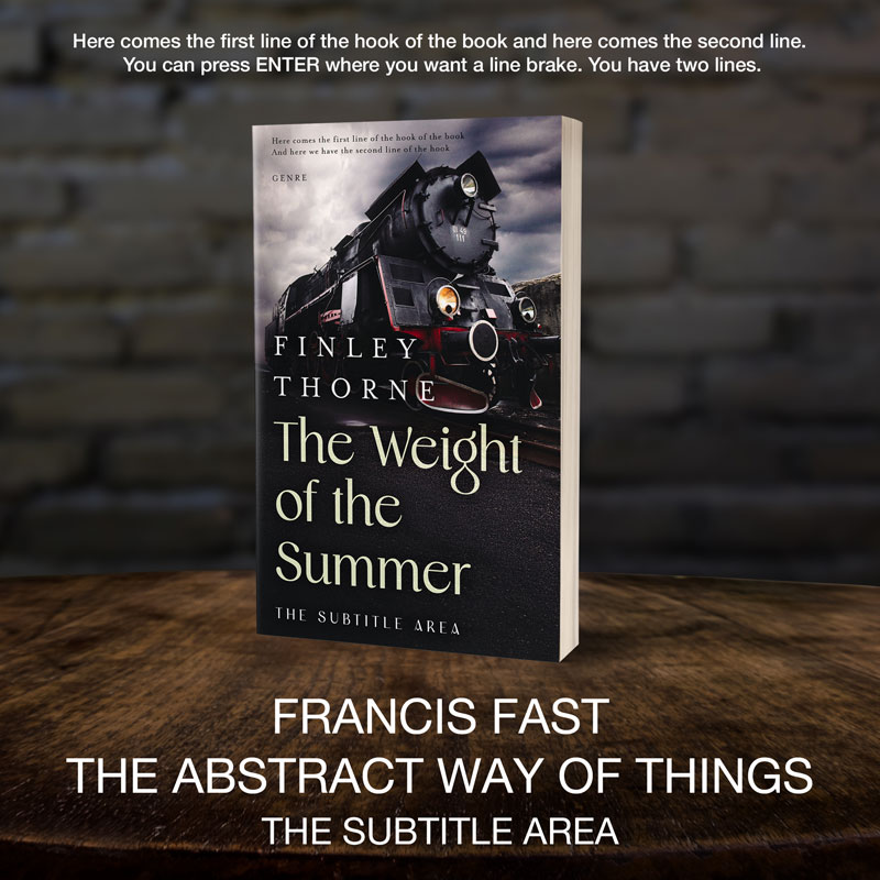 This book cover has 3 lines for the title, 1 line for the subtitle, 2 lines for the author, 2 lines for the hook, and finally 1 line for the genre.