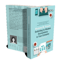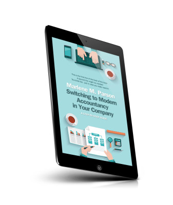 “Top view of hands with gadgets, coffee, and paperwork against a blue background, featuring a book cover design in the center.”