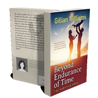 “A family silhouette at sunset with a man lifting a child in the air and a woman nearby. Title: "Beyond Endurance of Time."”