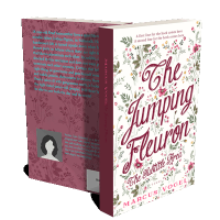 “Floral book cover with red and pink flowers, featuring large bold script text in the center.”