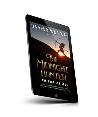 “A silhouetted archer with a bow and arrow stands on a hill at sunset. The text "The Midnight Hunter" is prominent.”